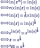 L'équation xn = a admet une unique solution dans appelée racine énième de a. Elle est notée